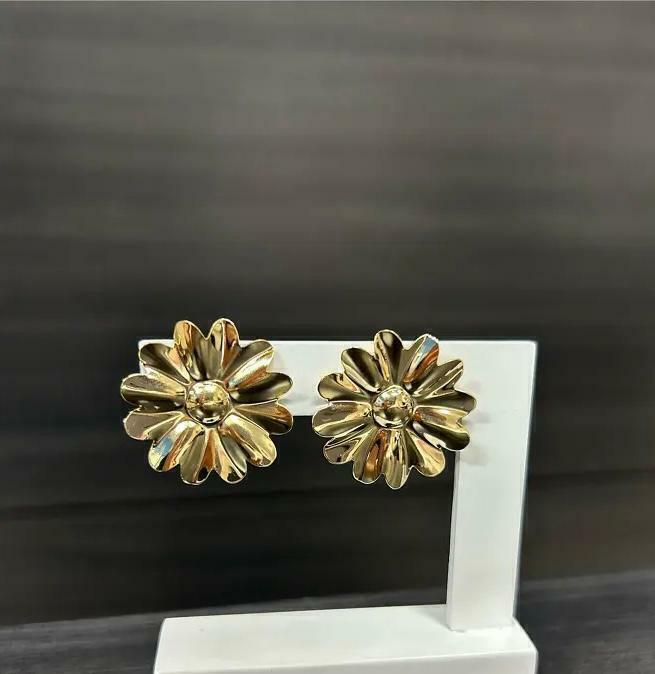 Brinco banhado em Ouro 18k com design em formato de flor. Perfeito para realçar sua beleza com leveza e brilho.